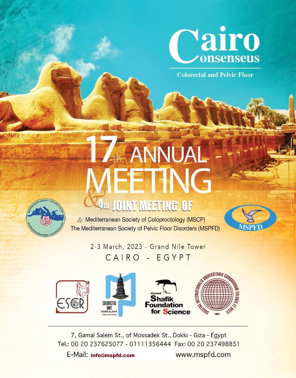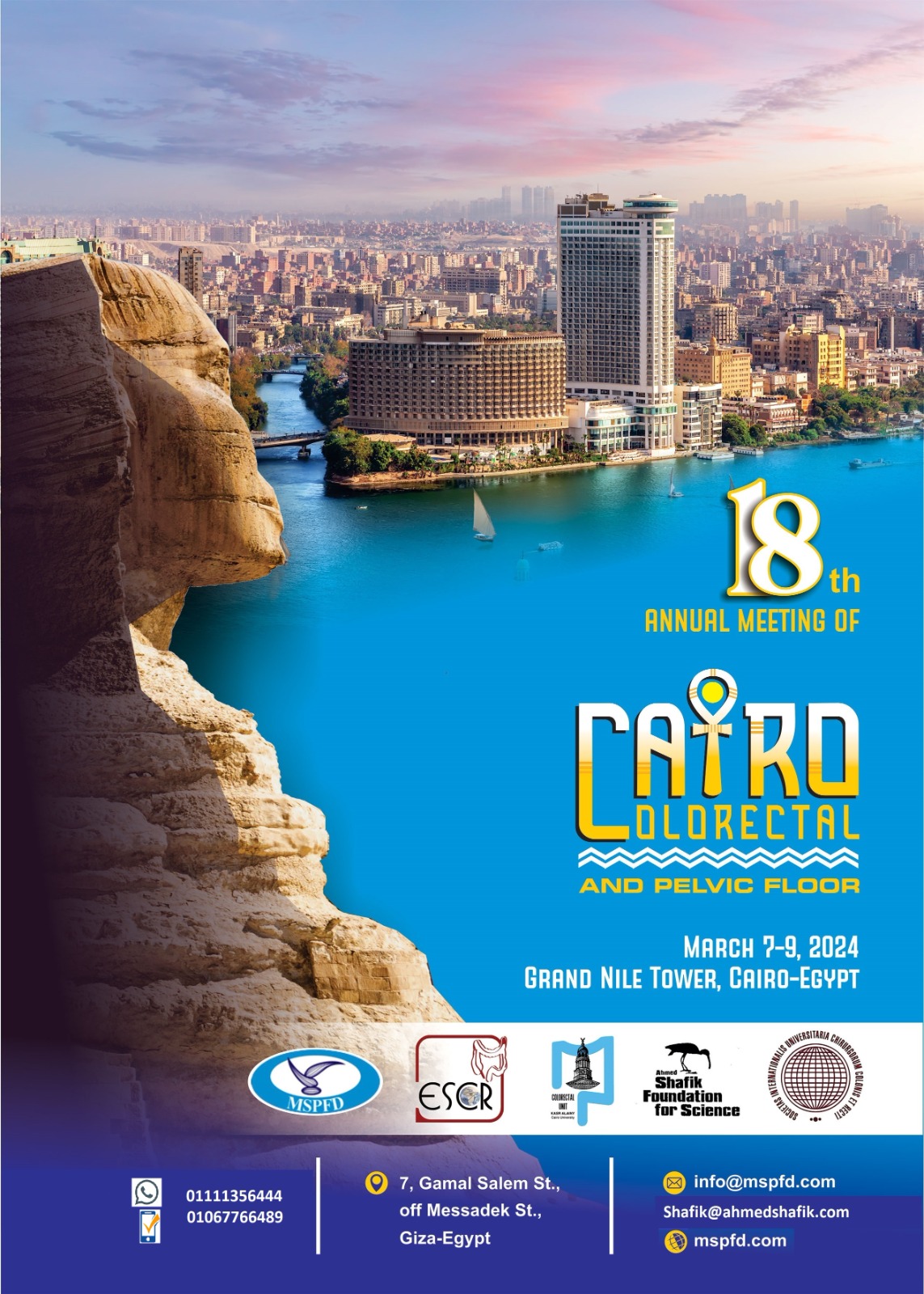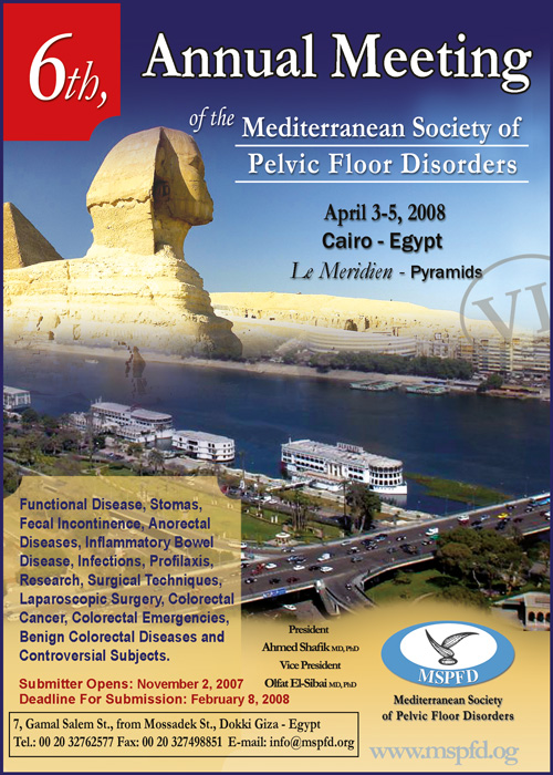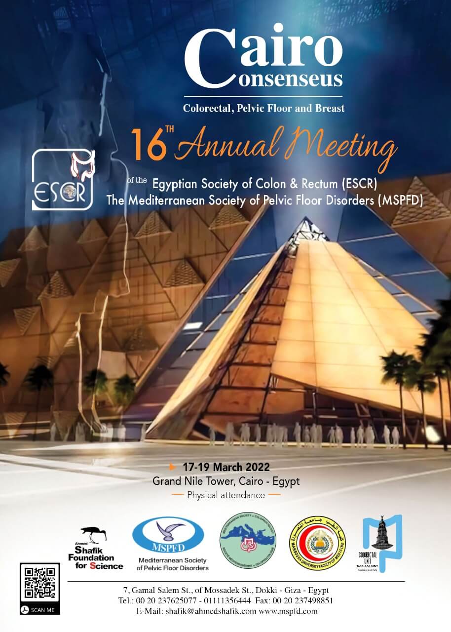On behalf of ESCR & MSPFD and the program committee, it gives me a great pleasure to extend to you this invitation for the 20th Annual Meeting of the Mediterranean Society of Pelvic Floor Disorders (MSPFD) and the Egyptian Society of the Colon and Rectum (ESCR) on April 16-18, 2026 in Hilton Cairo Grand Nile, Cairo, Egypt.